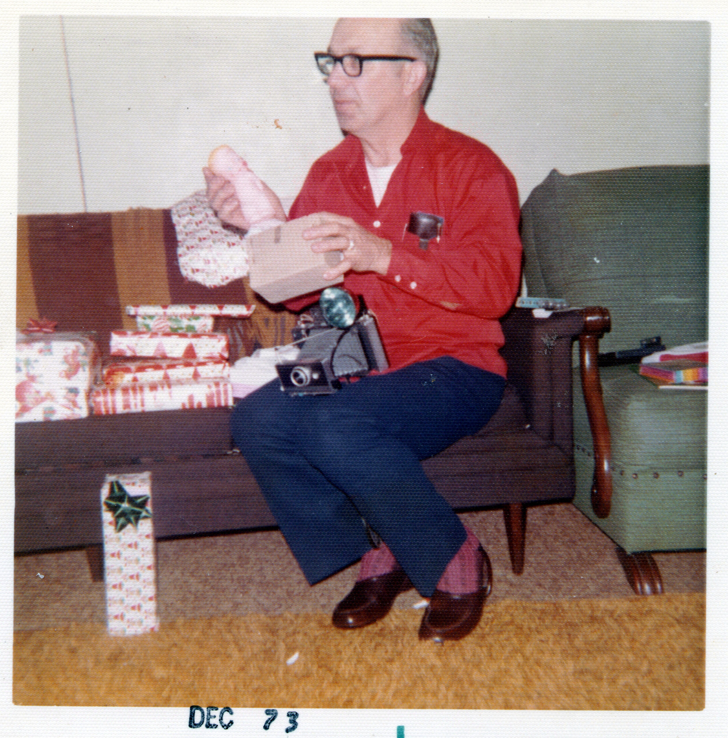 Cameras have always been around my house growing up. My father always had a camera and apparently mom had a more current Polaroid than the folding camera my father is holding below. I believe the camera is a 1960 Polaroid Land camera.